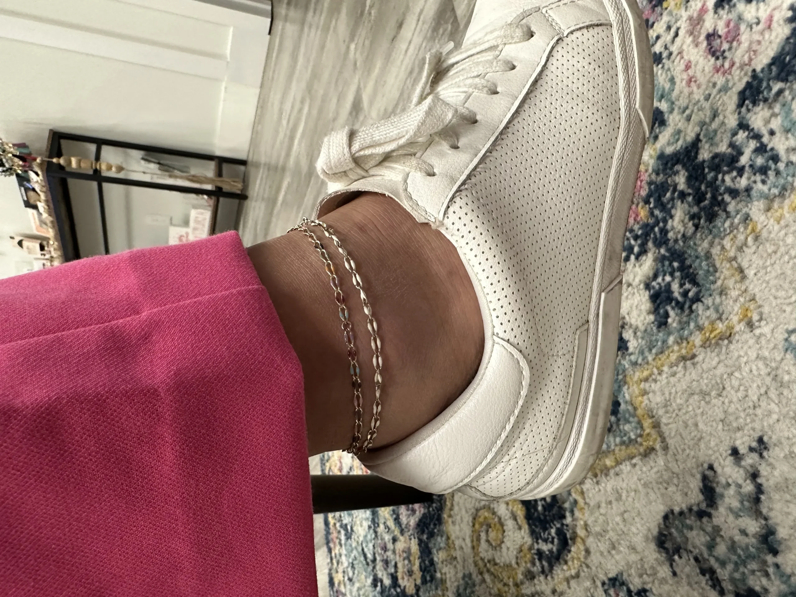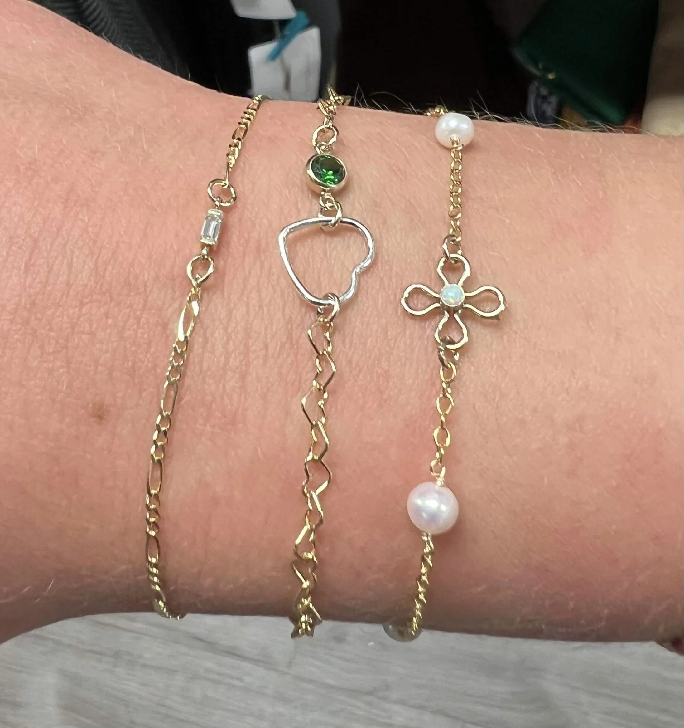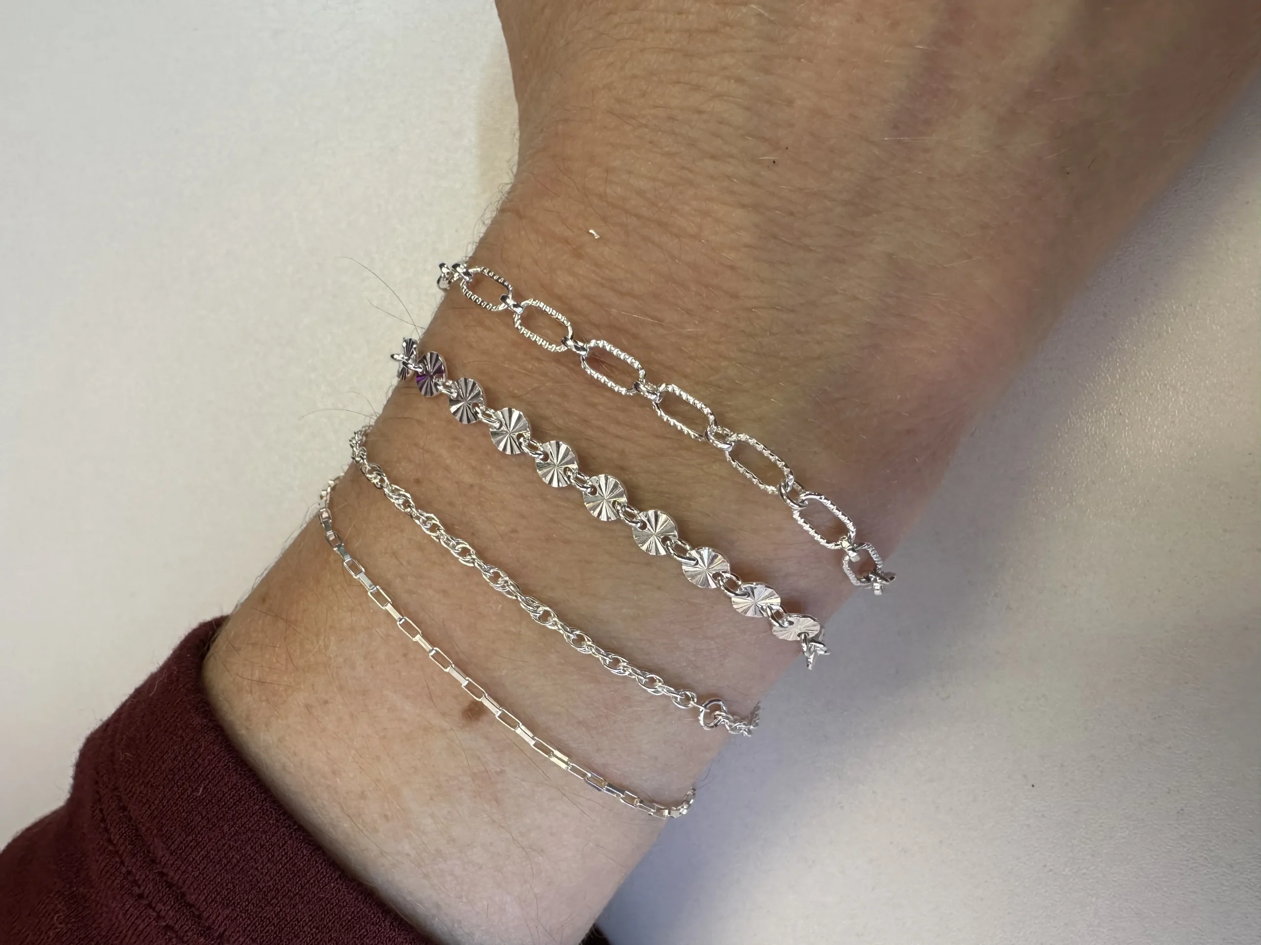 Permanent jewelry is a custom designed bracelet, anklet or necklace. I carry sterling silver, gold filled, rose gold filled and solid gold chains. Permanent jewelry is safely welded together and does not have a clasp. It is water and sweat proof.